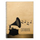 Carnet Gramophone Vintage original et original en noir avec une silhouette d'un gramophone à l'ancienne et une cascade de notes musicales sur un arrière - plan en papier rendu art numérique. Ce carnet personnalisé chic conservera vos notes et vos pensées avec un flair vintage et est parfait pour tout amateur de musique. Facile à customiser, personnalisez simplement avec le texte de votre choix. Cliquez sur le bouton "Customiser" pour trouver d'autres options de personnalisation.