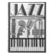 Carnet noir et blanc de musique de jazz. Les illustrations originales ont été faites en charbon de bois. La conception a une série d'instruments de musique comprenant une clarinette, basse droite, vieux microphone, trompette, piano, et un pilon. Grand pour le mélomane, le professeur, ou l'étudiant.