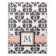 Cette jolie et élégante couverture rose et noire de carnet de notes à spirale de damassé avec un arrière - plan légèrement texturisé peut être personnalisée avec votre monogramme ou initiale sur la conception de ruban de point de contraste. Ce carnet fait sur commande peut également être utilisé comme journal, journal intime, approvisionnements de siège social ou de nouveau au cadeau d'école. Conçu par Chrissy H. Studios, LLC.