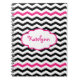 Rayures noires et blanches personnalisées modernes et à la mode de chevron de caractéristiques de carnet de notes à spirale de rayures de chevron et deux rayures roses de chevron d'accent et un cadre blanc d'accent décrit dans le rose pour votre nom, initiales ou tout autre texte. Montrez votre personnalité avec ce carnet de notes à spirale d'amusement et de rayure à la mode de chevron. Perfectionnez pour un journal, en prenant les notes, le travail, l'école et la maison. Fait un grand cadeau pour toutes les occasions. Cliquez sur la "personnaliser il !" boutonnez pour changer la taille des textes, la couleur des textes, le style de police et les plus !