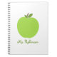 Un carnet de notes à spirale pour des professeurs comportant une illustration d'une pomme verte. Personnalisez avec votre nom.
