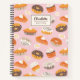 Cute cupcakes, beignets, petits pains à la cannelle et tartes avec carnet de recette texte sur arrière - plan rose clair
