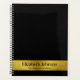 Deux lignes de texte d'affichage noir sont sur un faux (pas de feuille) fond de bande dorée. Vous pouvez les modifier pour afficher votre nom et un message personnalisé tel que l'année en cours. La couverture arrière est également noire et dorée. L'intérieur a un aperçu de chaque mois ainsi que des planificateurs pour chaque semaine.