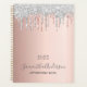 Un arrière - plan d'or rose avec élégante parties scintillant d'or rose, rose et faux argent gouttes, la peinture goutte à goutte. Modèle pendant un an. Personnalisez et ajoutez un nom et un titre. Le nom est écrit en gris avec un script de style moderne écrit à la main. Parfait pour les affaires, l'école, le journal, le travail ou l'organisation de votre vie personnelle/familiale.