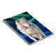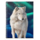 Un beau loup gris mâle avec des traits de fourrure presque blanc dans cette belle image d'art. Les aurores boréales forment un décor magique et une excellente couverture de Carnet pour les amoureux de la nature. 25 % des pourcentages de chaque Notebook vendu sont donnés à Wildlife Direct à l'adresse suivante : www.wildlifedirect.org