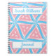 Un magnifique motif triangle bleu, rose et blanc recouvre ce journal et porte votre nom en haut. Les couleurs Trans Pride sont disposées dans un agencement amusant d'hexagones, d'étoiles et d'accents de graines à trois côtés. Personnalisable, changez "Journal" ou ajoutez l'année à l'aide du bouton Personnaliser.