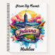 Une représentation animée de l'Indiana présente son horizon emblématique entouré de couleurs vives et d'éléments agricoles. L'oeuvre met en valeur la riche culture et la beauté pittoresque de l'État. REMARQUE Pour Modifier Les Couleurs De Texte Utilisez L'Outil Modifier À L'Aide De L'Outil De Conception