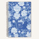 Carnet Delft Blue White Chinoiserie Bird Peonies Monogram
