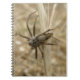 Ce carnet impressionnant présente une photo détaillée d'une araignée de jardin rampant une lame d'herbe de semis. Le beau détail de cette photo donne un sens de l'échelle.