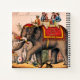 Impression vintage d'hommes faisant un acte de cirque avec un éléphant. Un homme est en train de rouler sur les défenses, un autre est allongé sous l'animal.