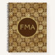 Belle et élégante classeur, avec des motifs floraux de dahlias dorés style pochoir sur arrière - plan marron foncé. Cercle central pour ajouter vos initiales monogrammes en police or sur arrière - plan brun