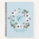 Carnet Design floral noir, blanc et Turquoise monogramme