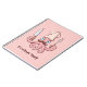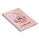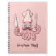 Dessin animé de calamar rose avec moustache tenant un couteau et une fourchette de cuisine. Couleur de fond personnalisée. Texte personnalisé.