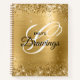 Parties scintillant dorée brillante et brillante contre une fausse image graphique à l'ombre jaune doré. On peut customiser le monogramme de calligraphie noir et blanc avec des dessins personnalisés étiquette au centre. Tous les éléments métalliques brillants, brillants et brossés de ce design moderne sont des graphismes numériques. Un précieux carnet de cadeaux ou un livre de dessin pour son anniversaire.