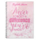 Un carnet de retraite personnalisé remarquable. Ce magnifique carnet de typographie conçu serait parfait comme un cadeau de retraite pour une infirmière, un médecin ou un enseignant. La citation "N'oubliez jamais la différence que vous avez faite" est présentée dans la typographie rose sur un arrière - plan rose pâle. Ajoutez votre propre message et le nom des destinataires pour créer une idée cadeau unique et personnelle.