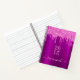 Un style féminin et féminin violet foncé faux métallique, arrière - plan à l'aspect feuille avec des gouttes de parties scintillant rose chaud, gouttes, gouttes. Personnalisez et ajoutez votre nom, lettre monogramme et une année. L'année à l'envers. Le nom est écrit avec un grand script à la main tendance avec des swashes. Pour que les swashes ne suppriment que le nom de l'échantillon, laissez les espaces ou émoticônes devant et après le nom. Lettres rose pâle et violette. Utilisez-le comme journal, journal, pour prendre des notes, pour l'école, le travail ou votre bureau à domicile.