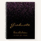 Pour une fête moderne et branchée de remise des diplômes. Un arrière - plan noir chic avec confettis rose et violet. Le texte : Graduate est écrit avec un grand script de style écrit à la main. Modèle pour un nom et une année. Pour planifier votre fête, vos notes ou votre livre d'or.