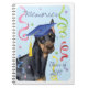 Laissez votre diplômé favori sauver des souvenirs d'école avec ce journal mettant en vedette un mignon diplômé de Doberman Pinscher portant un mortier au milieu d'une flûte de confettis.