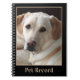 Ce carnet a un gros plan d'un chien pubred Yellow Labrador Retriever et a un libellé personnalisable qui dit, "Dossier animal de compagnie" sur lui. Utilisez-le comme il est pour garder le suivi des dossiers de santé de votre animal de compagnie, des réalisations d'agilité, etc. ou modifier le texte pour dire ce que vous voulez.