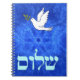 Dispose de "shalom" (Hébreu "paix") et d'une colombe portant un peu de branche d'olivier dans son bec sur un bel arrière - plan fractal bleu et blanc qui rappelle les ailes d'oiseaux.