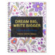 Unleash your creativity with this vibrant and inspiring notebook. Featuring a bold floral design on a deep black background, this notebook showcases uplifting quotes like “Dream Big, Write Bigger,” “Ideas in Progress,” and “Create. Inspire. Repeat.” Perfect for writers, artists, students, and dreamers, it’s ideal for journaling, note-taking, brainstorming, or daily reflections. A beautiful reminder that every great idea starts on the page.