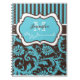 Ce damas floral bleu, marron et blanc aqua personnalisé avec carnet de notes rayées a des cases modèles pour vous d'ajouter votre nom, monogramme ou autre texte. Si vous avez besoin d'aide pour customiser cet article, veuillez envoyer un courriel à niteowlstudio@gmail.com pour obtenir de l'aide.