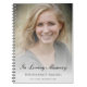 Ce carnet de livres d'invités commémoratifs ou funéraires personnalisé présente une photo de votre être cher. C'est un carnet merveilleux où les clients peuvent ajouter des souvenirs personnels s'ils le souhaitent.