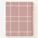 Organize your daily tasks with this sleek modern grid notebook. It features a dusty rose minimalist line pattern set against a warm ivory background. This sophisticated journal is ideal for professionals, students, or home office organization. Gray text.