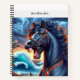 Deux oeuvres d'un cheval noir dramatique près de l'océan lors d'une tempête de foudre, imprimées à l'avant et à l'arrière d'un Carnet. Copyright (c) 2024