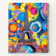 A colourful artwork of the Eiffel Tower