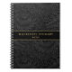 Elegant vintage black floral botanical pattern notebook with a custom name in gold classic serif typography and "notes" in gold modern san serif typography.