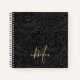 Elegant vintage black floral botanical pattern sketchbook with a custom monogram in gold classic serif typography and name in white modern san serif typography.