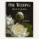 Un élégant carnet orné d'une peinture représentant une fleur de lotus. Sur le dos, on découvre un motif en cuir imitation brun. Beau comme un journal de planification mariage ou personnalisable à d'autres fins, par exemple un studio de yoga.