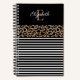 Un élégant poster de animal léopard noir et un carnet monogramme rayé noir et blanc pour votre bureau ou retour à l'école. Ajoutez votre nom et votre initiale entre sur le devant. Conçu pour vous par Blackberry Boulevard.