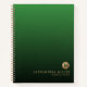 Elégant Moderne Luxe Brossé Médaillon Monogramme Or Métallique Nom initial Titre Texte personnalisé Emerald Green Gradient Carnet Arrière - plan
