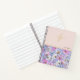 Magnifique cahier de monogramme en faux or associé à un jardin de fleurs roses et bleues. Le dos est recouvert de rose et comprend un petit cœur.
