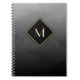 Faites une déclaration avec ce carnet monogramme noir et or élégant et élégant. Cette conception simple et sophistiquée de dégradé brossé avec un cadre moderne en forme de losange peut être personnalisée en ajoutant votre initiale monogrammée. Impression plane, NON métallique.