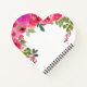 Un carnet en forme de coeur avec un design floral de roses aquarelles dans les tons rose et rouge avec des feuilles verts. Écrivez un nom entre les symboles avec des petites lettres et créez un cadeau unique et personnel qui est idéal pour la Saint-Valentin, le jour de la mère ou les anniversaires.