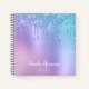Ce joli bloc-notes est composé d'une parties scintillant à goutte faux bleu et violet texture métallique et d'une police calligraphie élégante.