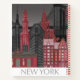 "New York Elevations by Night Red" par Fab Funky. Vous pourrez admirer des points de repère populaires de New York la nuit dans des tons rouges et gris.