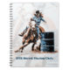 Image graphique de style d'art de bruit dans brun, bleu et noir d'une fille emballant avec son cheval autour d'un baril avec son vol de cheveux. Texte personnalisable.