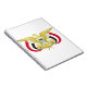 L'emblème national du Yémen représente un aigle d'or avec un parchemin entre ses griffes. Sur le rouleau est écrit le nom du pays en Arabe : "" (chanvre anglais), "Modeler", "Modeler", "Modeler", "Modeler", "Modeler", "Modeler", "Modeler", "Modeler". La poitrine de l'aigle contient un bouclier qui représente un plante de café et le barrage Marib, avec sept bandes ondulées bleues en dessous. Les flagstaff à droite et à gauche de l'aigle tiennent le drapeau du Yémen.