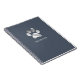Logo empreinte de patte argent luxueux sur un élégant arrière - plan bleu poussiéreux. Ce carnet en spirale a une ligne de texte personnalisable pour personnaliser comme vous le souhaitez. Parfait pour tout amoureux des animaux ou entreprise lié à l'animal de compagnie.