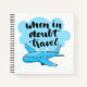En cas de doute voyage. Citation motivationnelle à l'arrière - plan nuage bleu avec avion, typographie de pinceau pour poster, t-shirt ou carte. L'art de la calligraphie vectorielle. | Bigstock® - Tous droits réservés.