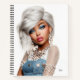 An elegant 8.5×11 hardcover notebook featuring a full‑frame editorial portrait of Eris Monei. The clean white background and tall canvas give the artwork a polished, modern look, perfect for beauty lovers, creators, and anyone who enjoys a refined, feminine aesthetic. A small customizable name sits in the bottom‑right corner, adding a personal touch without distracting from the portrait.