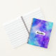Carnet spiral avec un arrière - plan abstrait cosmique. Couleurs vives et éclatantes de bleu clair, rose et violet. Des étoiles blanches éparpillées un peu partout.