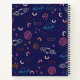 Carnet Espace et planètes Doodle en bleu Personnalisé