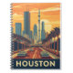 Ce carnet sur le thème de Houston présente une illustration de style vintage qui capture l'horizon emblématique de la ville avec un clin d'oeil à son rôle dans l'exploration spatiale. La couverture montre des voitures classiques et des palmiers le long d'une rue, avec une fusée et une navette spatiale exposée contre le paysage urbain. Ce carnet en spirale est un cadeau parfait pour les voyageurs, les amateurs d'espace ou toute personne qui apprécie le charme unique et rétro de Houston.