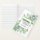 Personalize the cover of this simple watercolor greenery 2026 Eternal Happiness Convention Notebook by adding your name to the template space. Add the name of a special brother or sister you know who's getting baptized for a lovely gift idea. The cover design is a spray of watercolor green leaves and stems with a square box containing all the text. A similar beautiful pattern is printed on the back. *Please note: The inside of this notebook does NOT have talk titles or any other convention information.