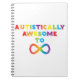 Design fait avec amour pour la Sensibilisation sur l'autisme. Les lettres arc-en-ciel forment l'expression "Autistiquement Awesome To Infinity" avec un symbole infinity.